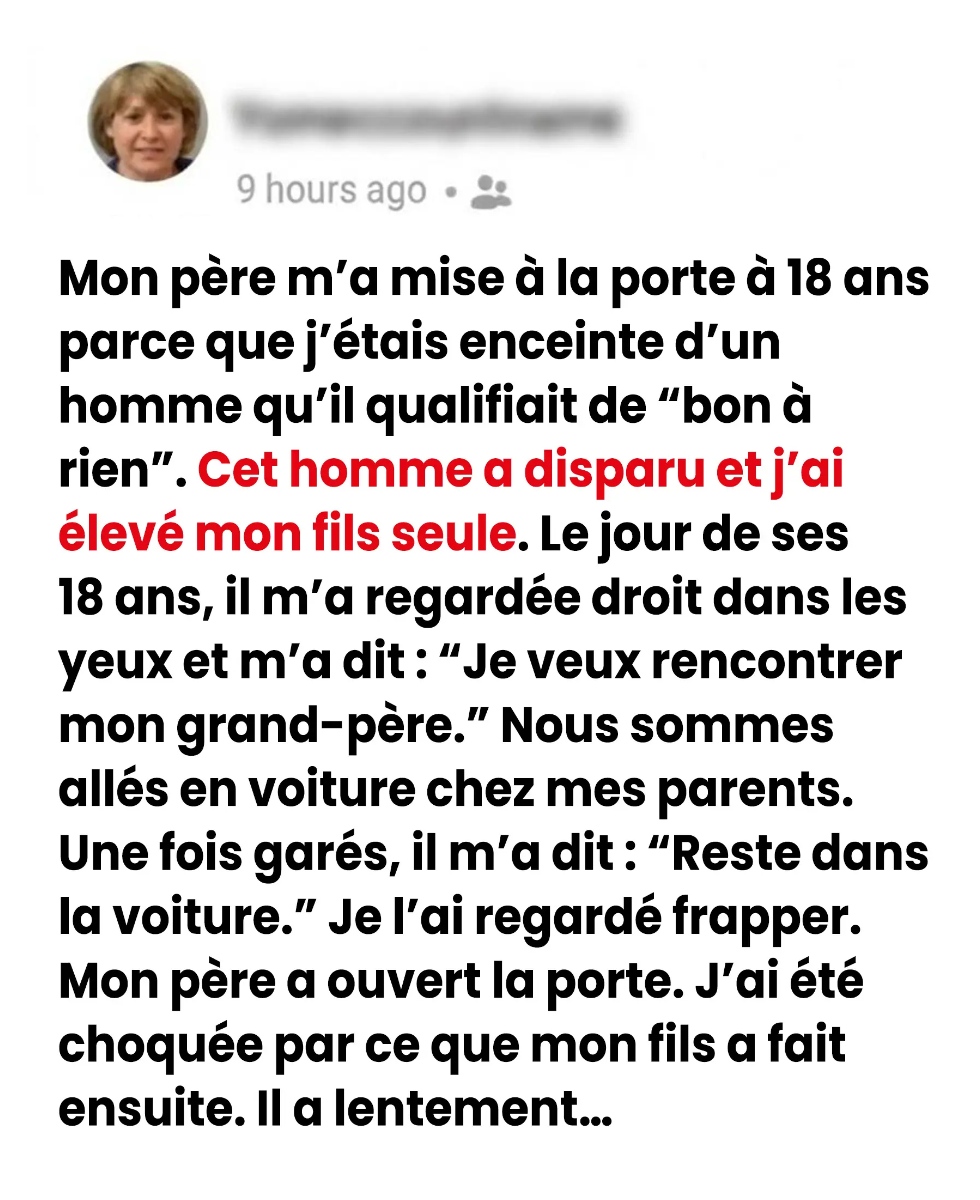 Certaines scènes restent gravées à vie : un regard, une phrase, un silence, parfois un simple claquement de porte. À 18 ans, elle ne s’attendait pas à ce que son univers bascule en quelques secondes. Pourtant, ce moment difficile allait devenir le point de départ d’une renaissance inattendue. Et près de vingt ans plus tard, c’est son fils, devenu jeune adulte, qui reviendrait sur ce même seuil, porteur d’un message capable de réparer bien plus qu’un passé brisé.