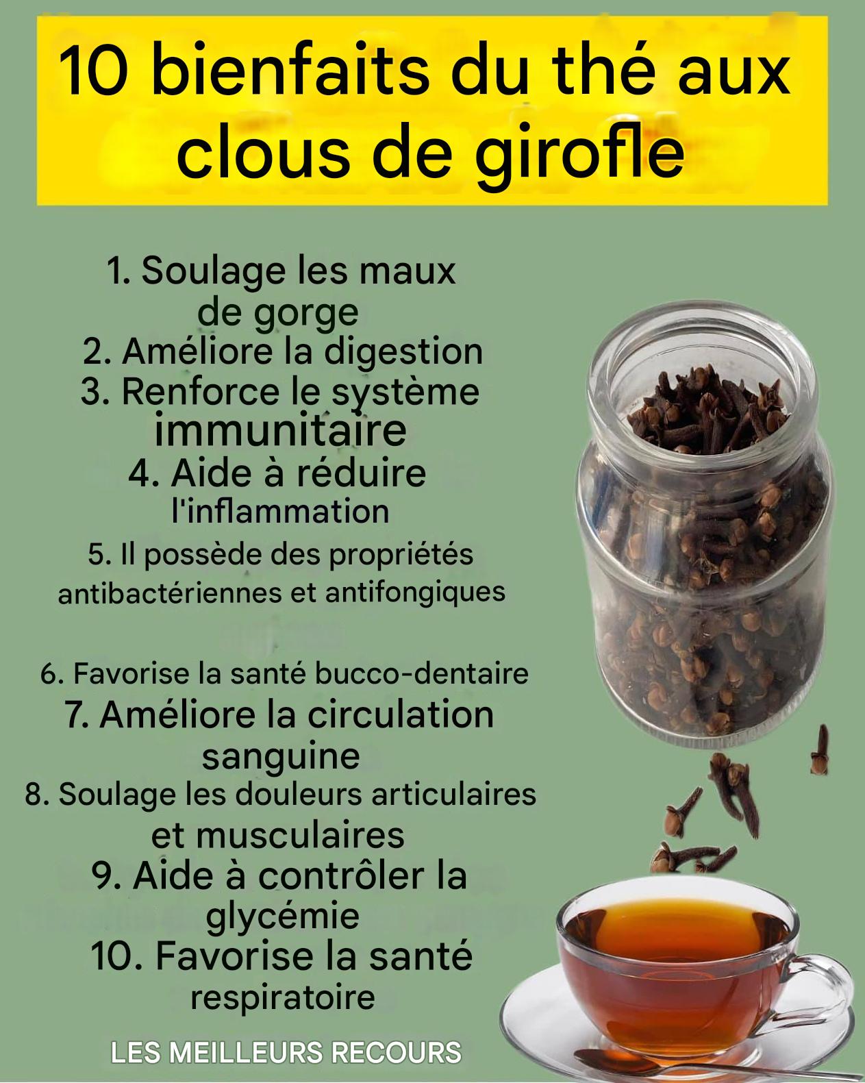 Le thé au clou de girofle et à la cannelle est une boisson délicieuse et aromatique qui associe deux ingrédients aux propriétés médicinales exceptionnelles. Cet élixir matinal ravit non seulement le palais, mais offre également de nombreux bienfaits pour la santé. Nous vous présentons ci-dessous 20 raisons d’intégrer cette boisson à votre routine quotidienne